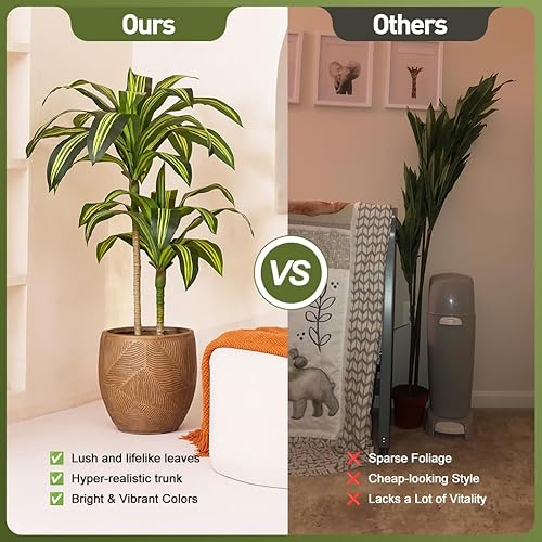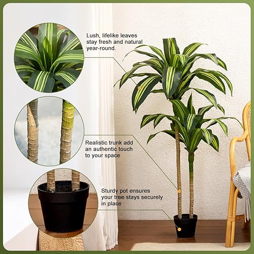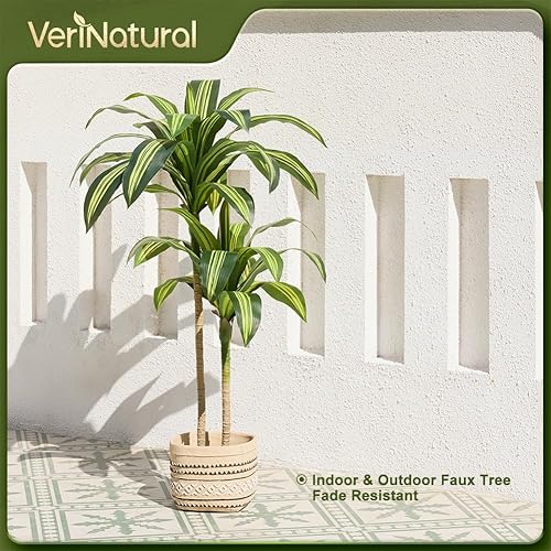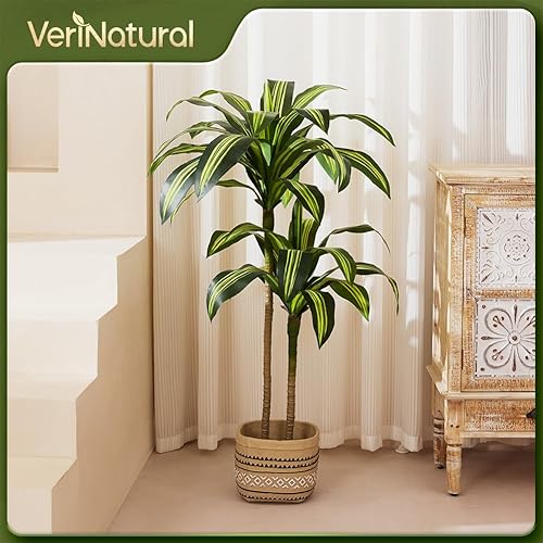 VeriNatural Dracaena Artificielle 120cm - Arbre Plante Décorative Fausse Plante Intérieure Extérieure avec Pot Noir - Grande Plante Artificielle Résistante aux UV pour Maison Bureau Jardin,VN123