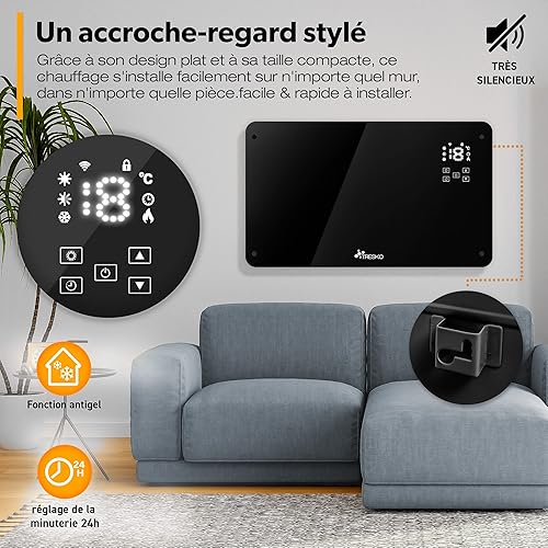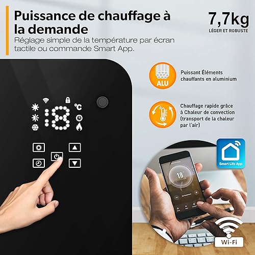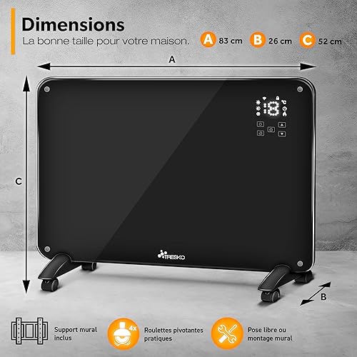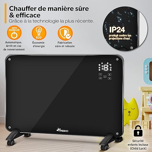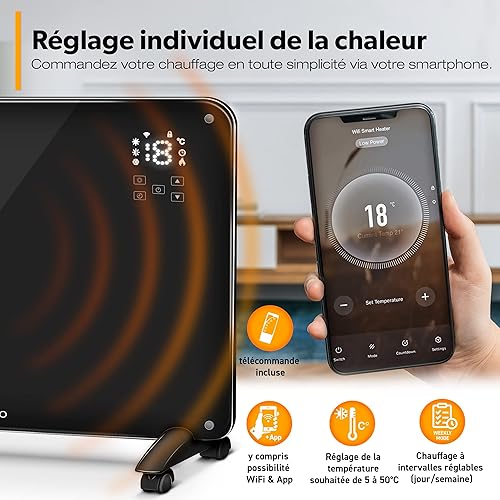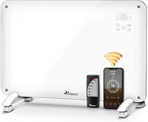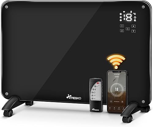 TRESKO Radiateur Electrique Mobile WiFi/App-Control & Affichage LED avec télécommande | Chauffage électrique Mural thermostat 9 ailettes de chauffage mobile économie d'énergie | Salle de Bain
