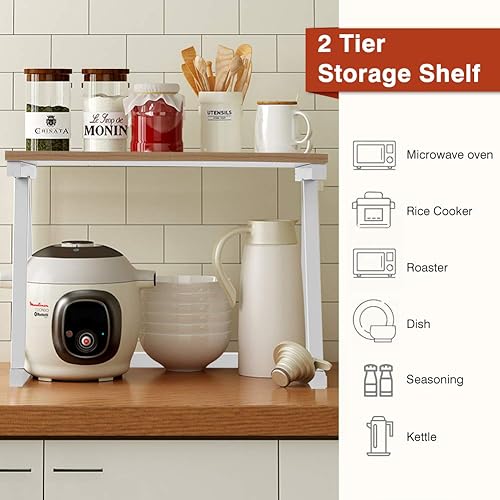 Etagère Micro-ondes, Support de Four à Micro-ondes à 2 Niveaux, Extensible Etagère Rangement Cuisine Multifonctionnel Robuste Organisateur D'étagère de Comptoir D'armoires de Cuisine 57 x 38 x 38 cm