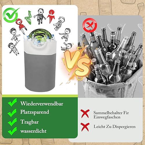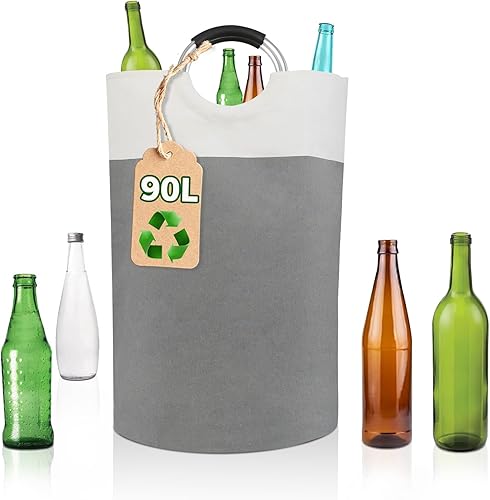 PHYSEN - Boîte de rangement de bouteilles consignées - 90 l - Pliable - Étanche - Grand panier en verre usé - Gris et blanc