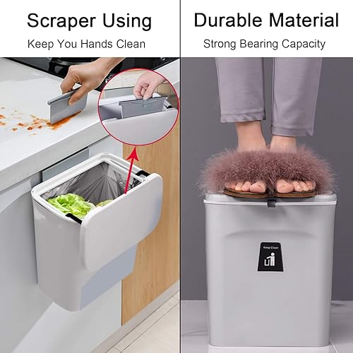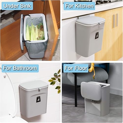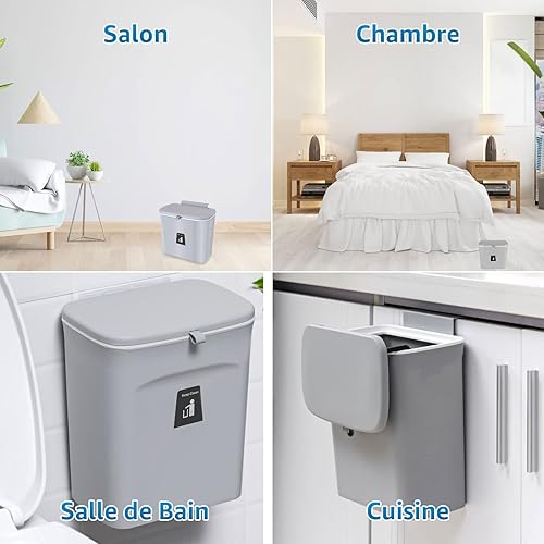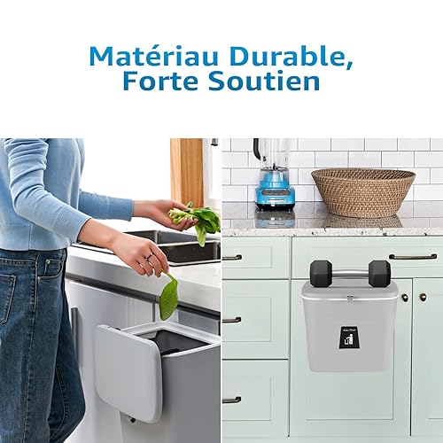 None Brand – Poubelle à Compost de Cuisine pour comptoir ou sous évier, Petite Poubelle à Suspendre avec Couvercle pour Placard/Salle de Bain/Chambre/Bureau/Camping, Seau à Compost d'intérieur Gris