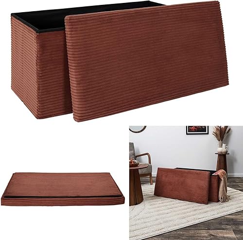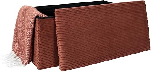 HOME DECO FACTORY, HD0278, Coffre Banc Pliable Cotele Scott Terra M2, Softness, Mobilier, Assise, Coffre et Banc Pliable, 76x38x38 cm, Hauteur Assise 38 cm, Terracotta