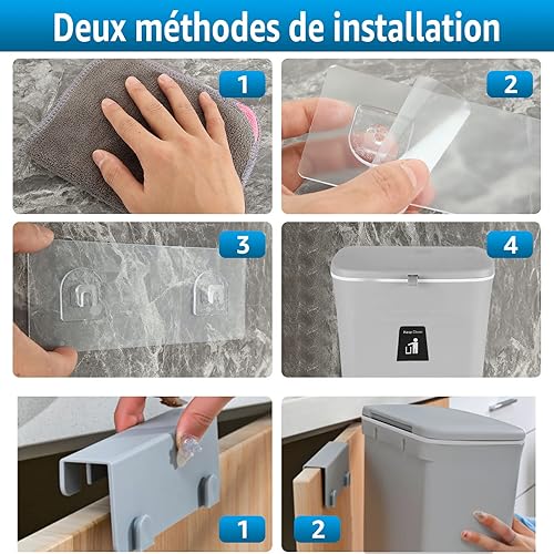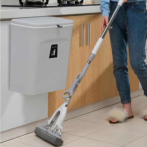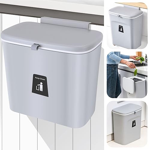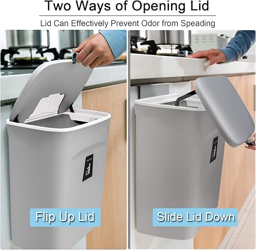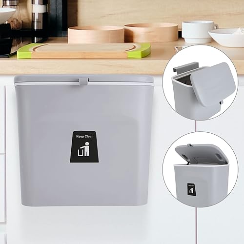 GOYADA 7L Poubelle Cuisine Suspendue, 25 x 23.7 x 13 CM Poubelle Murale Cuisine avec Couvercle Coulissant, Poubelle Cuisine à Accrocher pour Voiture Placard Cuisine Salle de Bain - Gris