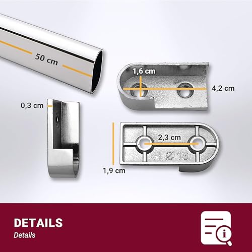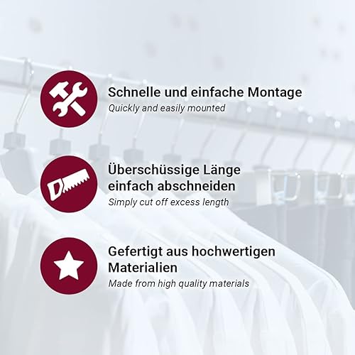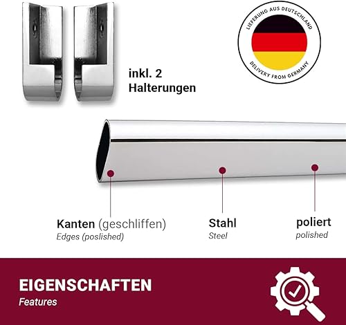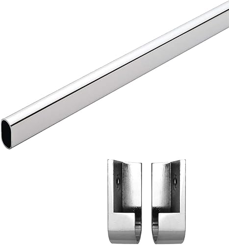 Euro Tische Tringle à vêtements pour armoire, tringle à penderie pour Pax, tringle à vêtements polyvalente, tube ovale en métal dans différentes tailles (120 cm avec support)
