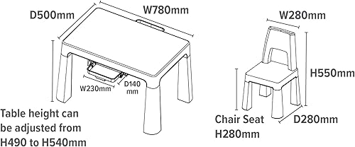 Liberty House Toys Table et 2 chaises réglables en Hauteur pour Enfant Blanc/Gris, Polypropylène résistant et Durable, H490/ 540 x W780 x D500mm