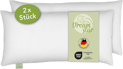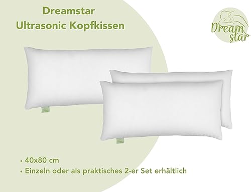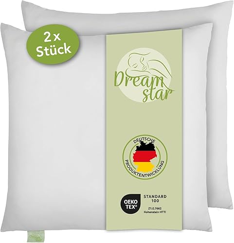 DREAMSTAR Eco - Lot de 2 oreillers avec rembourrage en fibres écologiques - Lavables à 40 °C - Convient aux personnes allergiques - 100 % microfibre - Certifié Öko-Tex - 80 x 80 cm