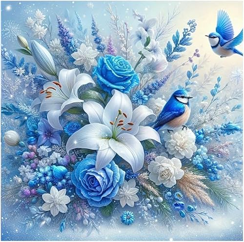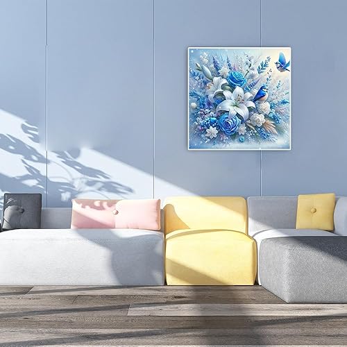 DCIDBEI Peinture Diamant Fleurs Lis Bleu 40x40cm Peinture par Numéros Fleurs Lis Diamant Painting Fleurs Lis Broderie Adultes pure élégante Loyauté Saint Bonheur Tableau Perle Diamant Fleur de Vie