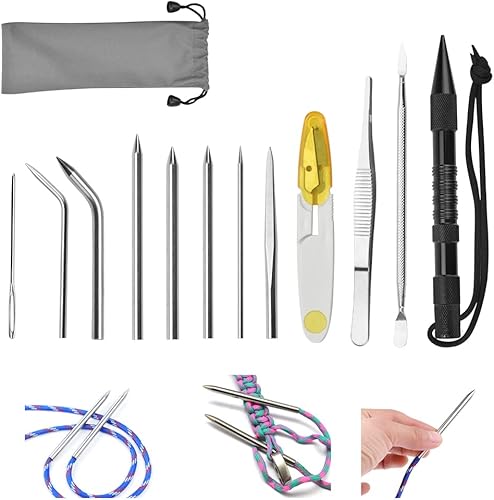 WENRERO 12 PCS Paracorde FID en Acier inoxydable, 8 Aiguilles de Laçage Paracord FID en Aluminium de Différentes Tailles, Outil de Lissage Outils de Nouage pour Travail de Paracord avec un Sac