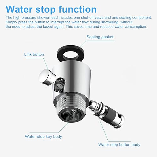 PHMING Pommeau Douche Haute Pression, Atomiseur Haute Pression Pomme de Douche Economie D'eau, Anneau Poire de Douche, avec Vanne D'arrêt, Douchette Robinet, pour Maison, Hôtel, École