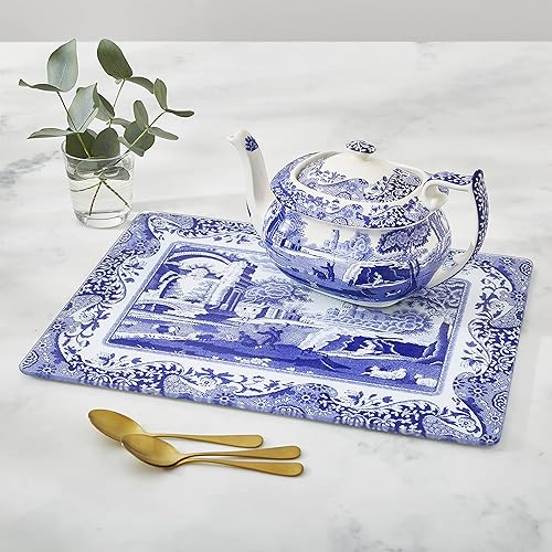Portmeirion Home & Gifts Protection de Plan de Travail en Verre Italien Bleu et Blanc 30 x 40 cm