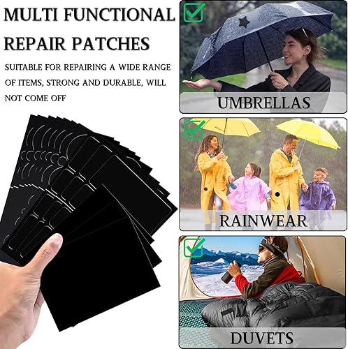 KEYRI 211 Pièces Patchs de Réparation Formes Rondes et Rectangulaires Nylon Patch Autocollant pour Vestes, Tentes et Vêtements D'extérieur Down Jacket Patches pour Tissus à Surface Lisse (Noir)