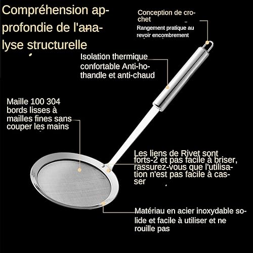 Mesh Colander Spoon - Skimmer Spoon | Stainless Steel Kitchen Mesh Colander Spoon, Multi-Functional Skimming Spoon with Ergonomic Handle for Juices, Soup