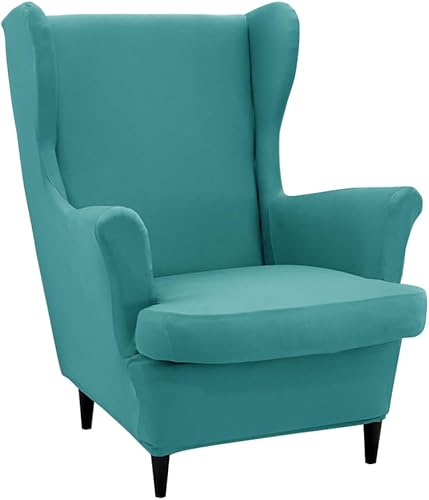 Meigeh Housses de Fauteuil à Oreilles Housse Fauteuil d'aile 2 pièces Housse de Protection Fauteuil à Oreilles Extensible Gris Vert