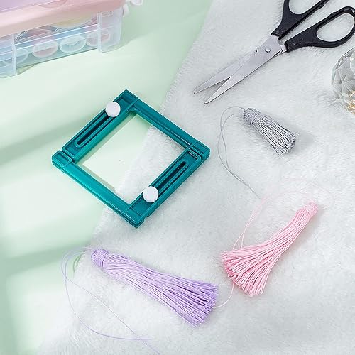 AHANDMAKER Fabricant de Glands en Plastique réglable, Outil de Bricolage à Pompon carré Sarcelle Outil de Pompon Fait à la Main pour Les Amoureux de la Main (Fait 3 Tailles, Glands de 3 à 5 cm)