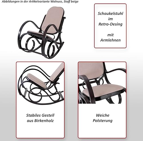 Mendler Rocking-Chair, Fauteuil à Bascule M41 - Imitation Noyer, Tissu Marron