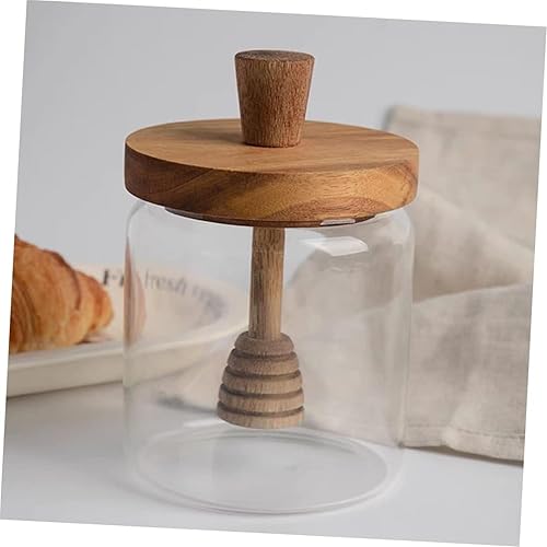 RRMMAN Bocaux en verre avec couvercles - Pot à miel en verre transparent avec cuillère en bois et couvercle - Récipient à miel pour stocker et distribuer du miel d'abeille