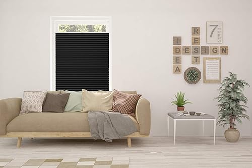 ondeco Store plissé sans perçage avec supports de serrage, protection solaire pour fenêtres intérieures, stores sans perçage, opaque, brise-vue pour porte, cadre de fenêtre, store noir 110 x 130 cm