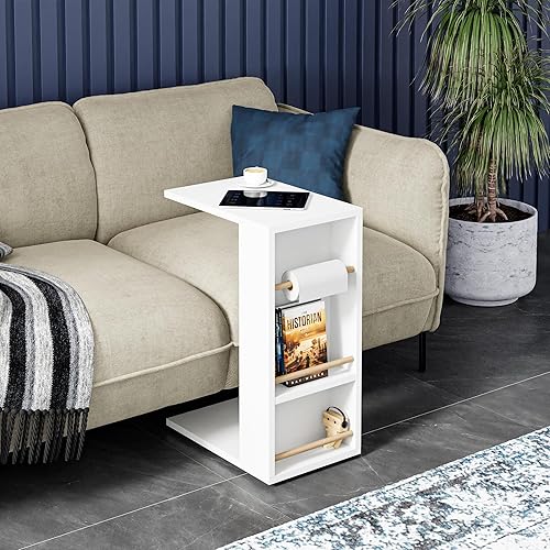 [en.casa] Table d'Appoint Style Intemporel pour Ordinateur Portable Bout de Canapé Table de Chevet avec 4 roulettes Panneau de Particules Bois Plastique 44 x 29 x 65 cm Noir