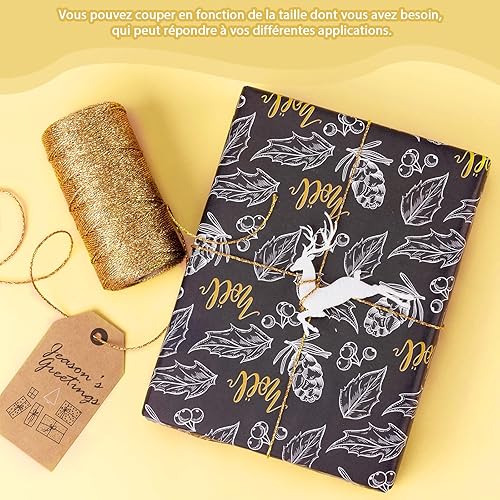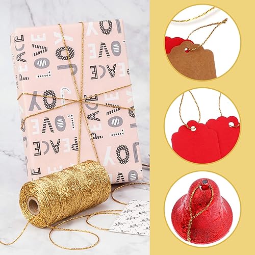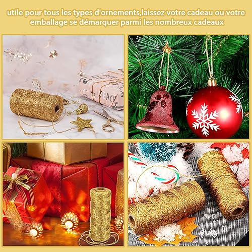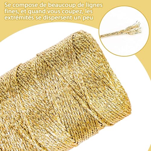Fil Doré Noel 100M Fil d'or Métallique Cordon Ficelle Dorée Fil Ciré 1.5mm Fil d'or Métallique Cordon Fil pour Emballage de Cadeaux Corde de Loisirs Créatifs pour Bijoux DIY Artisanal Décoration