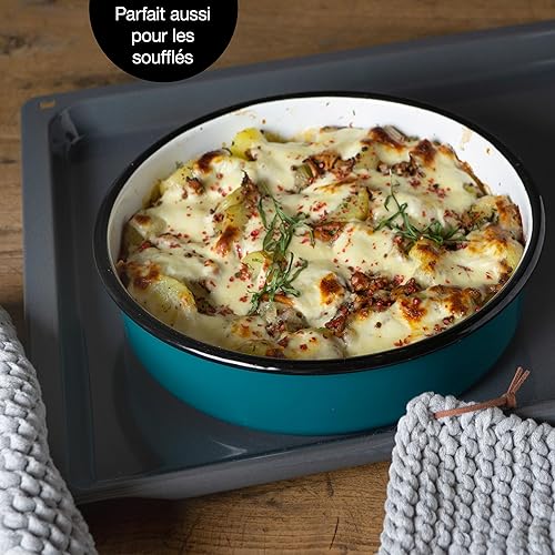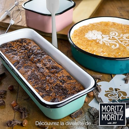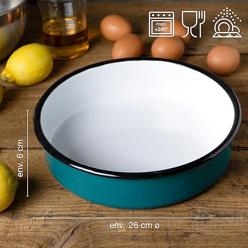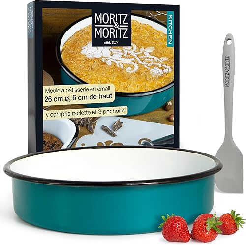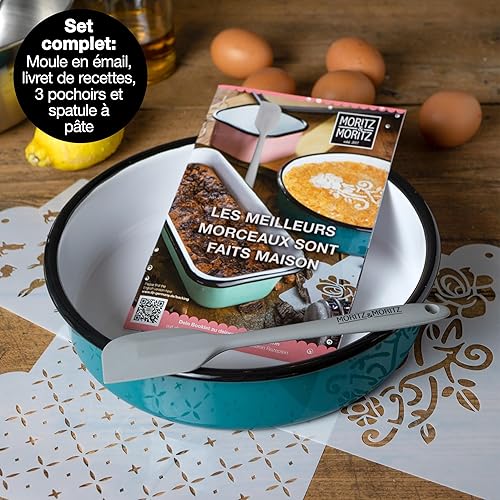 Moritz & Moritz Moule à Cake en Email - Rond - 26 x 6 cm - Cuisson du Pain et des Gâteaux - Avec Corne 3 Gabarits de Décoration Livret de Recettes - Plat Four