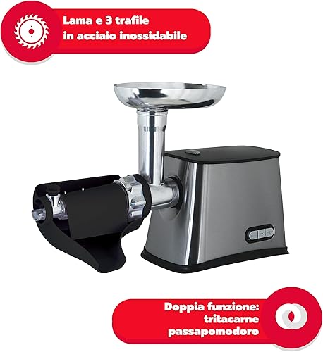 ARDES - Hachoir et moulin à tomates électrique professionnel - Hachoir électrique en acier Hachoir électrique équipée d’un moteur avec fonction Reverse Moulin à tomates et à viande Modèle AR7460