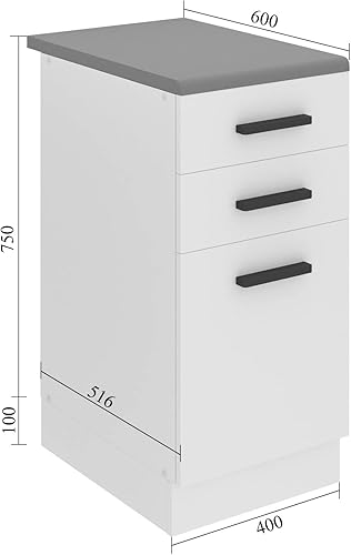 BELINI Meuble Bas sans Plan de Travail SDSZ - Cuisine - 51,6 x 40 x 82 cm - 2 Tiroirs, 1 Porte - Blanc Mat