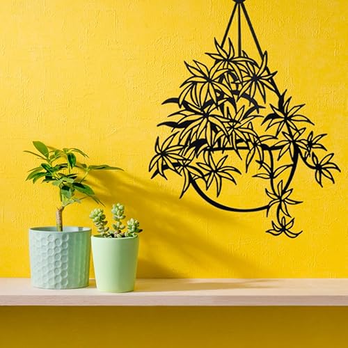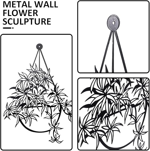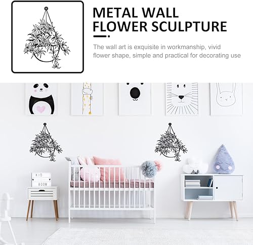 Beavorty Fleurs De en Fer Forgé Fleurs en Métal Art Mural De Fleur en Métal Sculpture Fleur Décor en Métal Vase Noir Le Fer Décoration Murale 3D Minimaliste