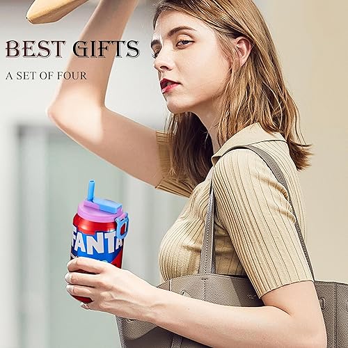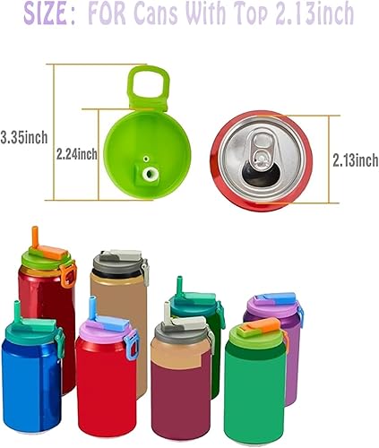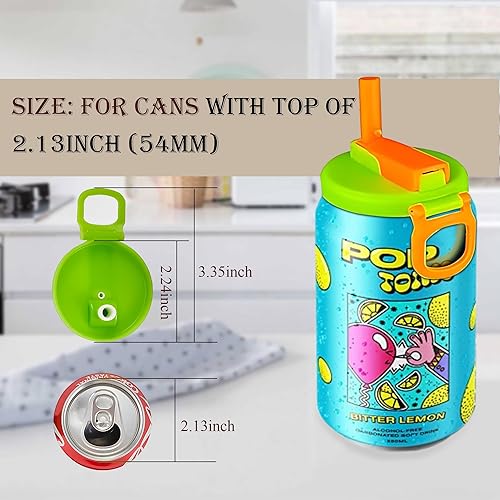 JUANSHI® Lot de 4 couvercles de canette en silicone avec pailles, réutilisables, anti-fuites, pour soda, cola, limonade, sans BPA et respectueux de l'environnement, compatibles avec les canettes de