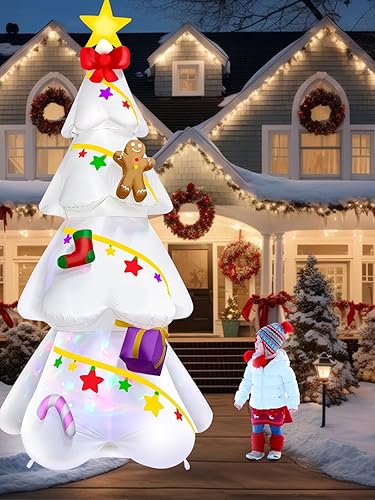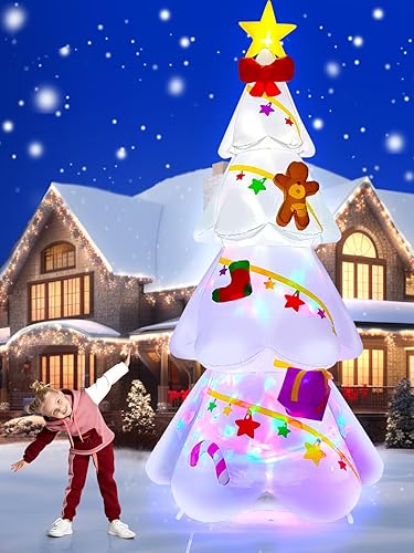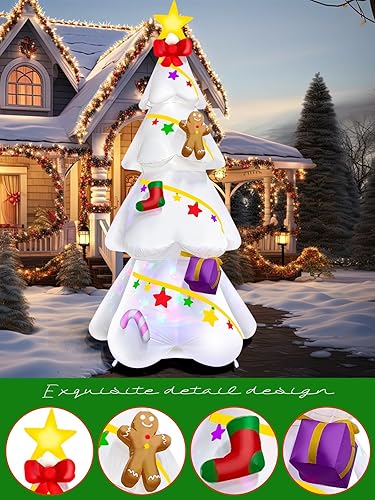 EBANKU Sapin de Noël Gonflable de 9FT, Blanc - avec boîte Cadeau - Décoration d'extérieur et d'intérieur - pour la Maison, la Famille, la Cour, la pelouse