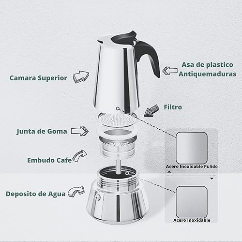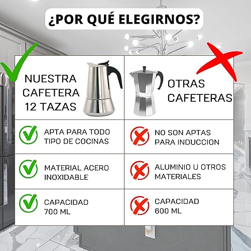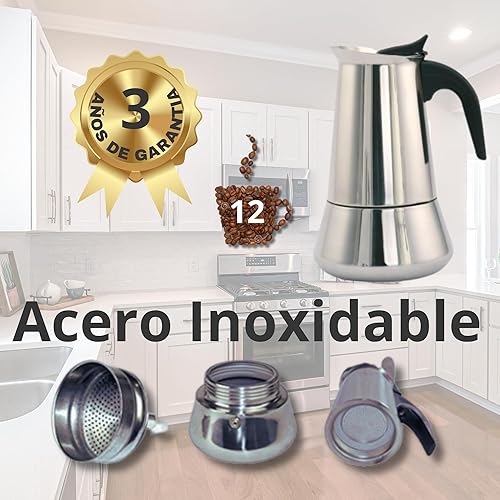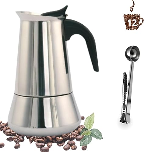 RAMBUTAM Cafetière italienne à induction 12 tasses (700 ml) avec récipient en cadeau, cafetière en acier inoxydable adaptée à tous types de cuisinières, cafetières vitrocéramique, induction, gaz,