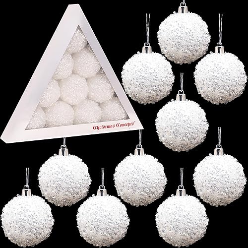 Christmas Concepts® Pack de Boules de Sapin de Noël de 5 à 100 mm (4') - Boules Scintillantes Blanches irisées
