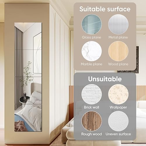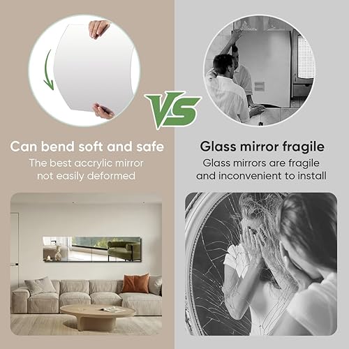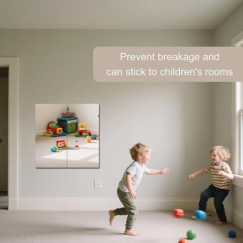 Lot de 4 miroirs autocollants en acrylique pour murs - 35 x 35 cm - HD - Sans verre - Incassables - À fixer au mur - Pour maquillage, entraînement à la maison, salle de sport, couloir