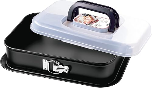 Kaiser Inspiration Moule à charnière carré 36 x 24 cm (14 x 9,5 po) rectangulaire avec couvercle, moule à tiramisu revêtement antiadhésif, poignée pliante, moule à gâteau carré
