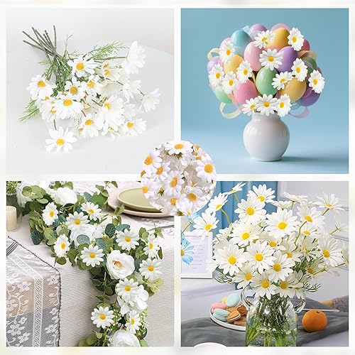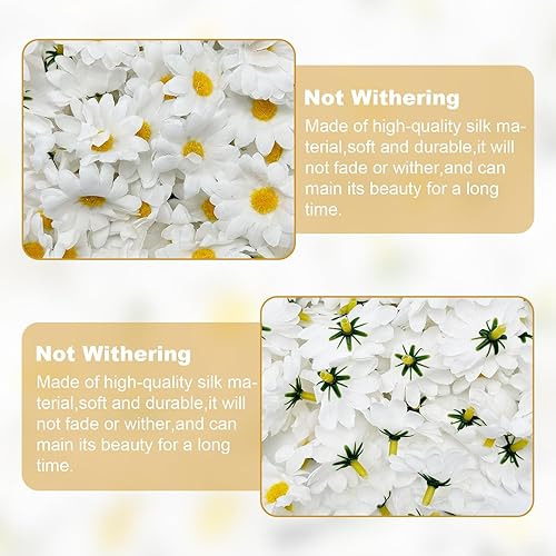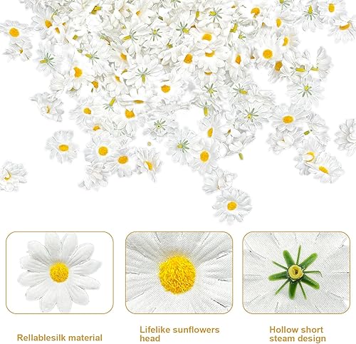 TUONYIS 200 Pièces Tête de Marguerite Artificielle 4 cm Fleurs Artificielles Déco Mini Fleurs, Paquerettes Artificielles, Gerbera Soie Marguerite Artificielle pour Jardin, ête, Mariage, Table (Blanc)