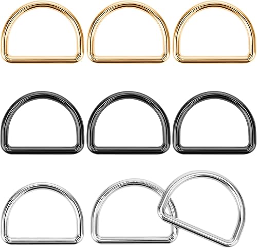 Lot de 9 anneaux en D en métal de 2,5 cm, anneaux en D de 3 mm d'épaisseur en acier inoxydable robuste pour sacs à dos, sangles de sangle, sacs, laisse de chien, accessoires de bricolage (couleurs