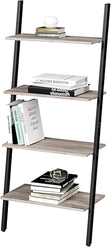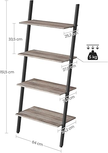 VASAGLE Etagère échelle, meuble de rangement à 4 niveaux, bibliothèque, étagère inclinée, pour salon, cuisine, bureau, cadre en acier, stable, marron rustique et noir LLS43BX 64 x 34,2 x 151,5 cm