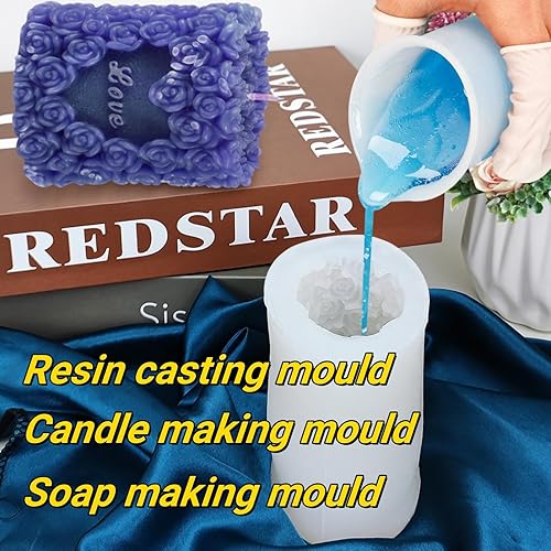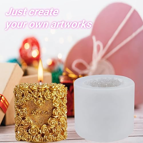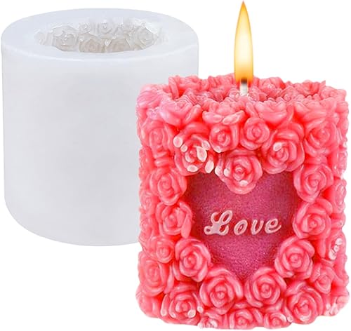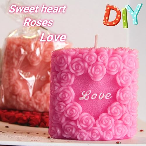 3D Moule Silicone Bougie Rose Fleur Moule Bougie Amour Coeur Moule Savon Cire Soja Cire D'abeille Moules Jelly Candy Chocolat Fondant Décor pour Anniversaire Mariage Anniversaire Fête Noël Cadeau
