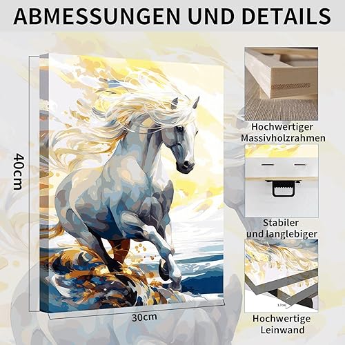 LZLHDE Tableau mural sur toile pour salon, images de chambre à coucher, cheval, tableaux muraux pour chambre à coucher, avec cadre, décoration murale, 30 x 40 cm
