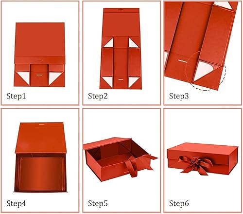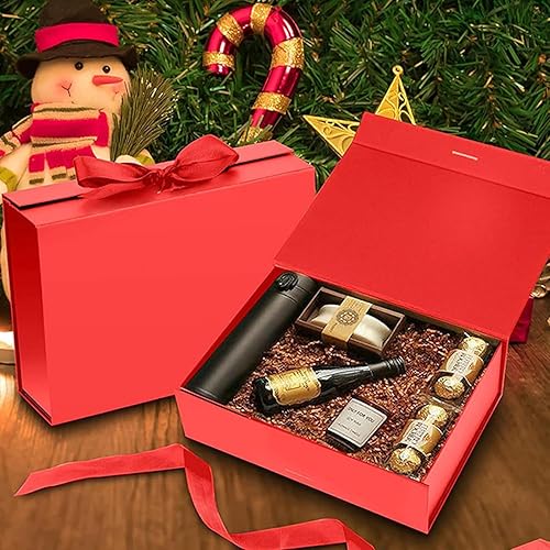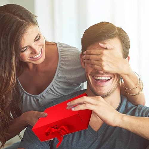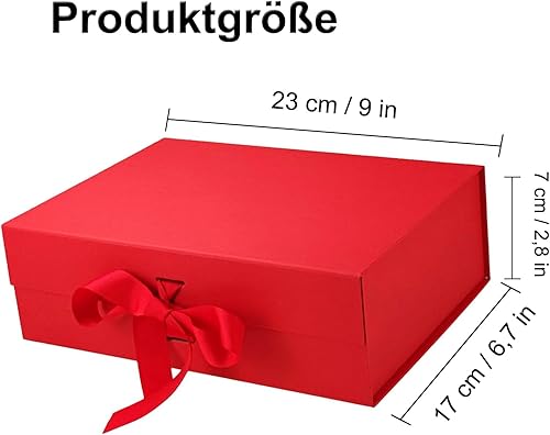 Boîte Cadeau Rectangulaire Magnétique, Boite Cadeau Magnetique avec Couvercle, Bowknot Boite Cadeau, pour Anniversaire, Noël, Saint Valentin (Rouge)