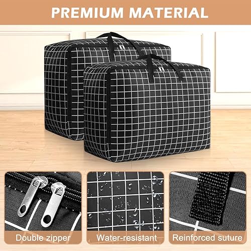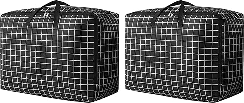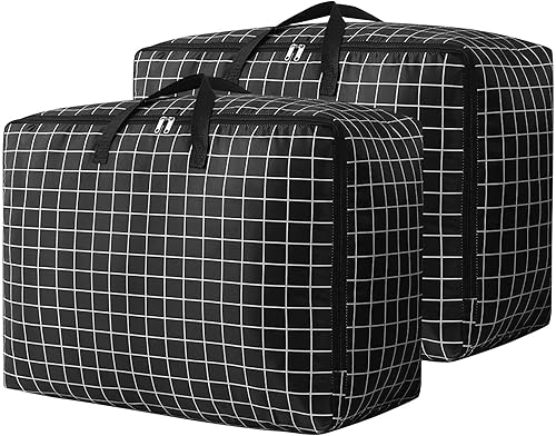 Lot de 2 grands sacs de rangement avec fermeture éclair, sac de rangement pour couette, vêtements, déménagement, sacs de déménagement (70 x 30 x 50 cm)