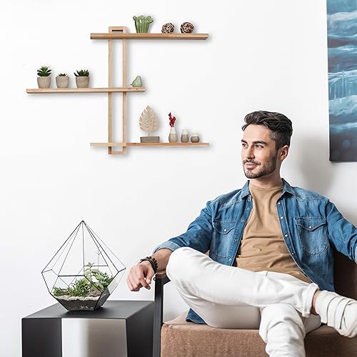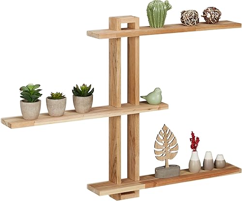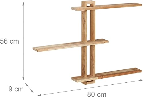 Relaxdays Étagère Murale, Bois de Noyer, HxLxP: 56x80x9 cm, décoration Murale, Rangement Rustique avec 3 Niveaux, Nature
