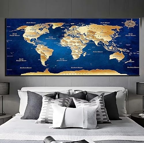 Diamond Painting Adulte, Peinture Diamant Point de Croix, 5D DIY Diamond Painting Carte Monde Grand Format Broderie Diamant, Tableau en Perles à Coller, Murale Chambre Décoration 110 X 55cm q472