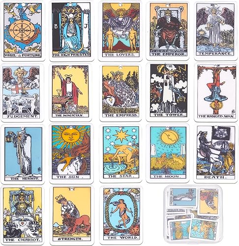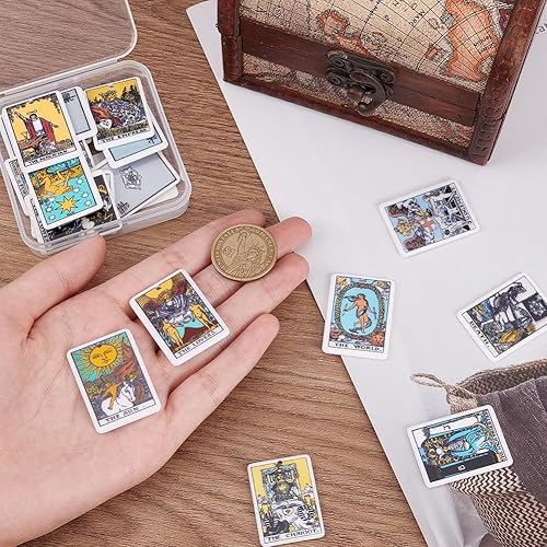 SUNNYCLUE 1 boîte 18 styles de Breloques de Tarot, de Cartes de Tarot, en Vrac, Acrylique, Porte-Bonheur, Astrologie, Divination, Amulette Magique pour la Fabrication de Bijoux, Breloques, Fournitures