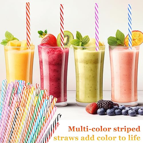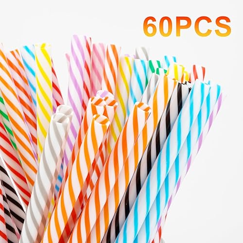 Lanovuto 60 Pièces Paille Plastique, Pailles Reutilisable avec Brosse de Nettoyage, Paille Bubble Tea, pour Cocktails, Jus, Smoothie (23 cmX7 mm)