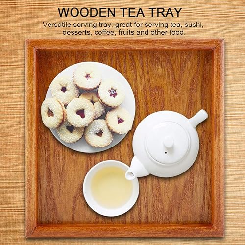 Plateau de Service en Bois Naturel Massif Carré - Plateau à Thé pour Café/Restaurant/Maison (22 * 22cm)
