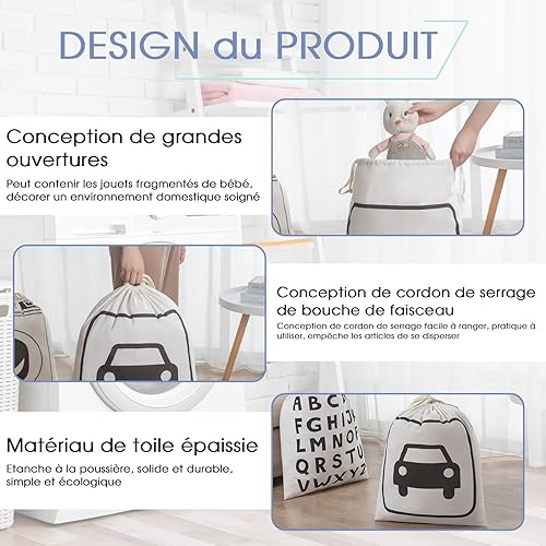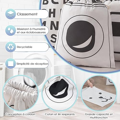 Scettar 2 Pièces Sac à Linge Sale de Voyage - Sac de Rangement en Toile Coton Robuste 60 x 50 cm,pour Voyage et stockage