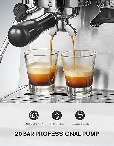 Reemix Machine à Expresso avec Porte-Filtre, Machine à Café 20 Bars avec Moulin Intégré et Mousseur à Lait, 1350 W, Réservoir de 2,8 l, Acier Inoxydable/Argenté, Kit Barista (54 mm Porte-Filtre)