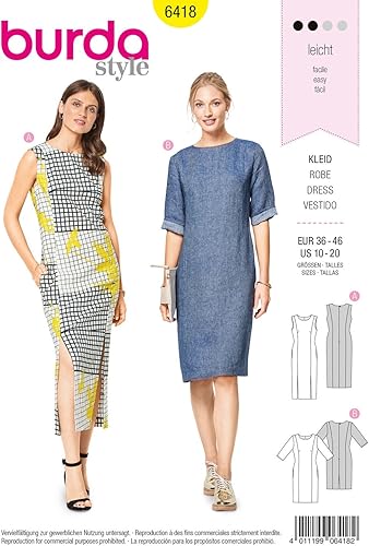 Burda Patron 6418 Robe, Blanc, Tailles EUR : de 36 à 46 (38 à 48 FR)