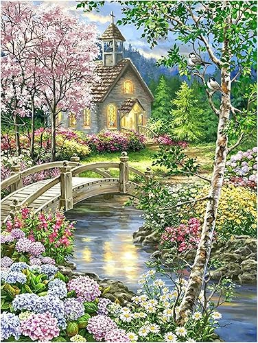SHEGZHUC 40x50cm Diamond Painting Paysage Diamond Painting Fleur de Cerisier Lac Maison Chalet Peinture Diamant Adulte Broderie Diamant Kit Complet Point de Croix Salon Chambre Murale Décor Artisanat