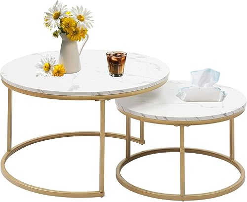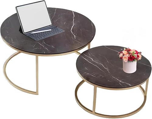 Xisilla Table basse ronde (2 pièces) en marbre 2 en un, convient pour salon, bureau à domicile et terrasses, couleur bois, diamètre : 80 cm et diamètre : 60 cm